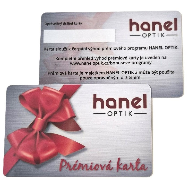 Podmínkou pro získání PRÉMIOVÉ KARTY jsou nákupy dioptrických brýlí v naší oční optice přesahující celkovou částku 30.000 Kč. Pro čerpání výhod prémiového programu je nutné předložit prémiovou kartu a karta musí být použita pouze oprávněným držitelem.